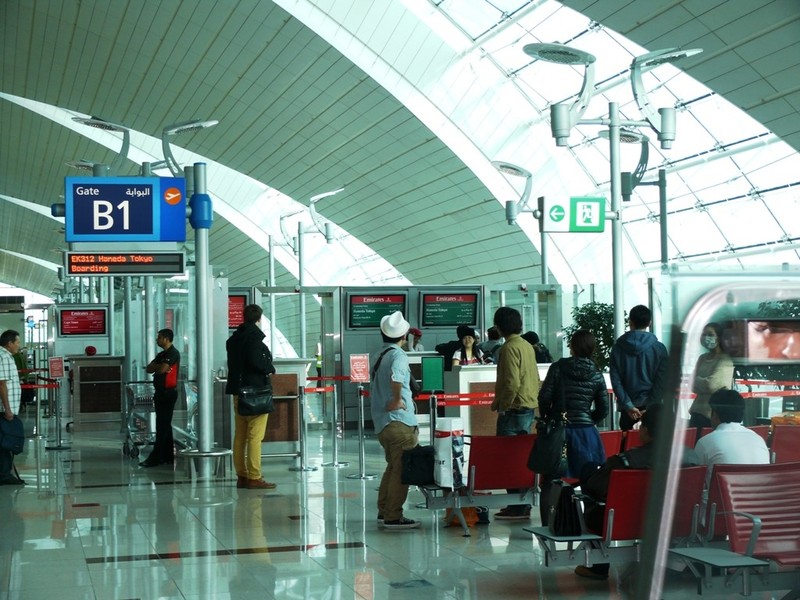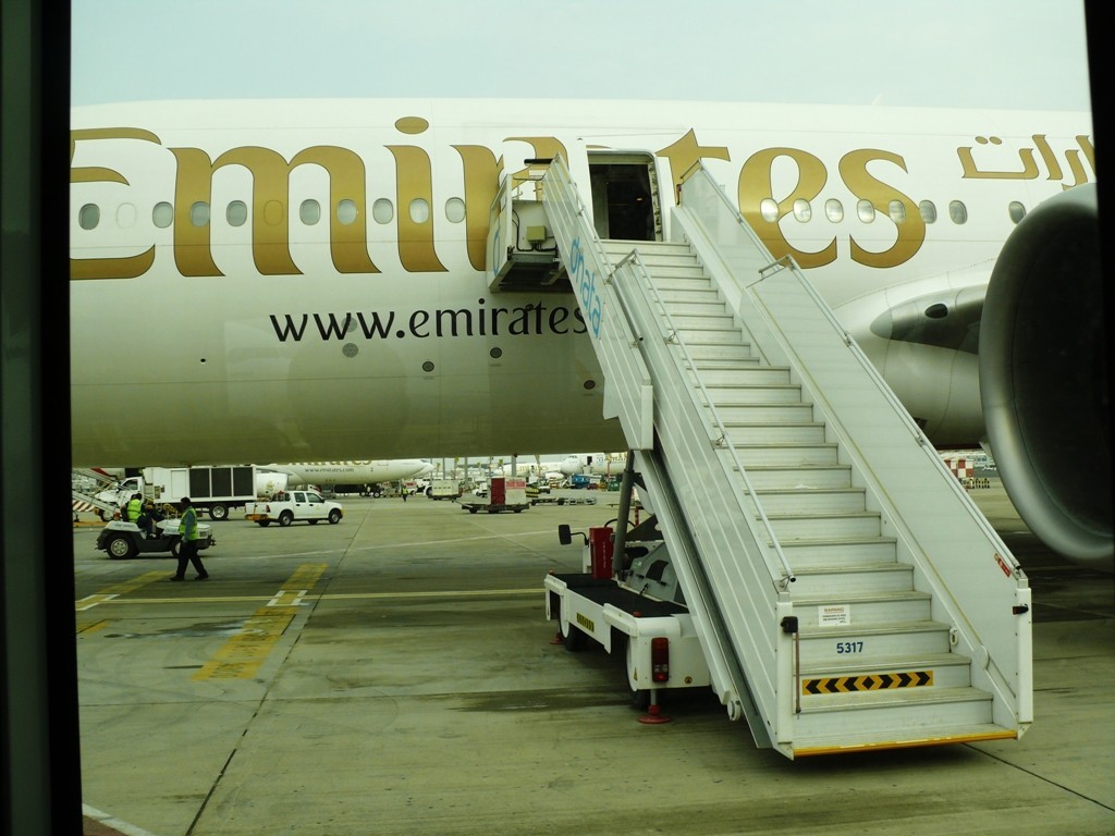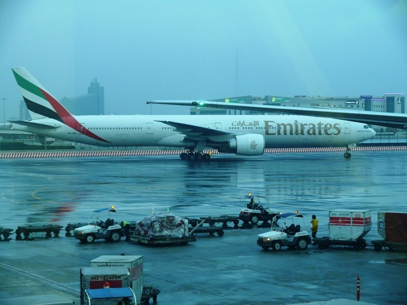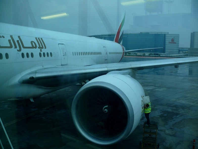 Wir haben 2 Stunden Zeitverschiebung. Dubai um 6:40h am 04.04.2014 zeigt sich verregnet. Aber wir bleiben ja sowieso im Transitbereich, da es bereits um 8:15h von Gate B1 weiter geht....