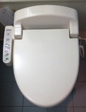 Erste Besonderheit: Der Deckel, er ist aus so zarten Plastik, dass er als Sitzfläche auch für leichter gewichtete Japaner völlig ungeeignet ist. Selbst beim "Fussaufsetzen" beult er schon bedenklich ein. Dafür hat er den Vorteil einer Vorrichtung, die mit einem Verzögerungssensor ein absolut lautloses Schliessen besorgt. Hab ich doch gleich gesagt- auch meine high tec Video Kamera ist von diesem Hersteller.