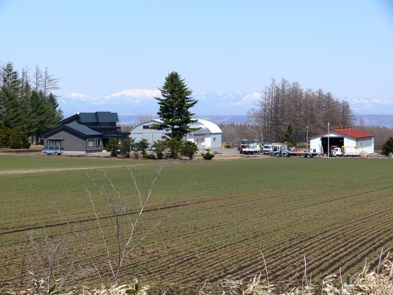 Kurz vor ‚Tokachishimizu’ nehmen wir – gegen den Rat unseres Navi – einen kleinen Bypass, der uns dann auch auf die ‚274’ führt. So haben wir auch einmal die Gelegenheit, ein japanisches Gehöft aus der Nähe zu sehen. Bewundernswert auch, wie exakt jede Bergkuppe schwarz nachgezeichnet ist – das macht den Japanern keiner nach.....