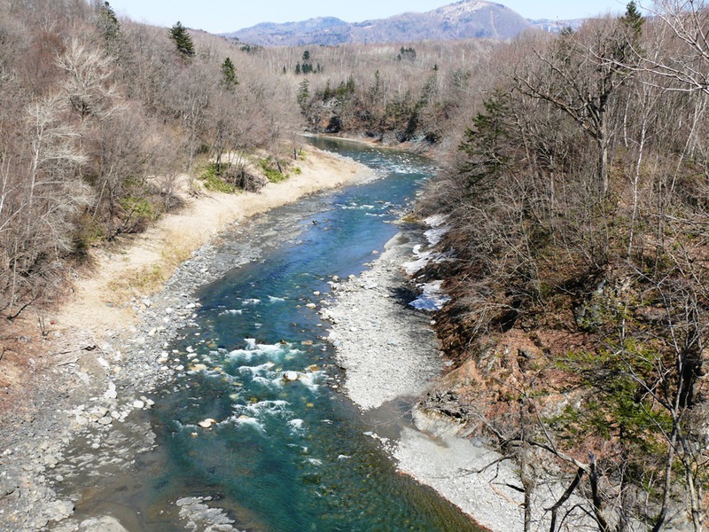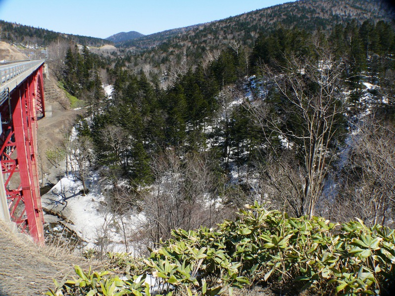 Die eigentliche Passhöhe ist wieder einmal "getunnelt", und auf der anderen Seite begrüssen wir den ‚Saru’-Fluss. An der Kreuzung zur Nationalstrasse ‚237’ in ‚Honchohigashi’ – einem kleinen Ort mit eigener Skipiste, kaufen wir unseren "Quick-Lunch" im ‚Coop’-Laden...