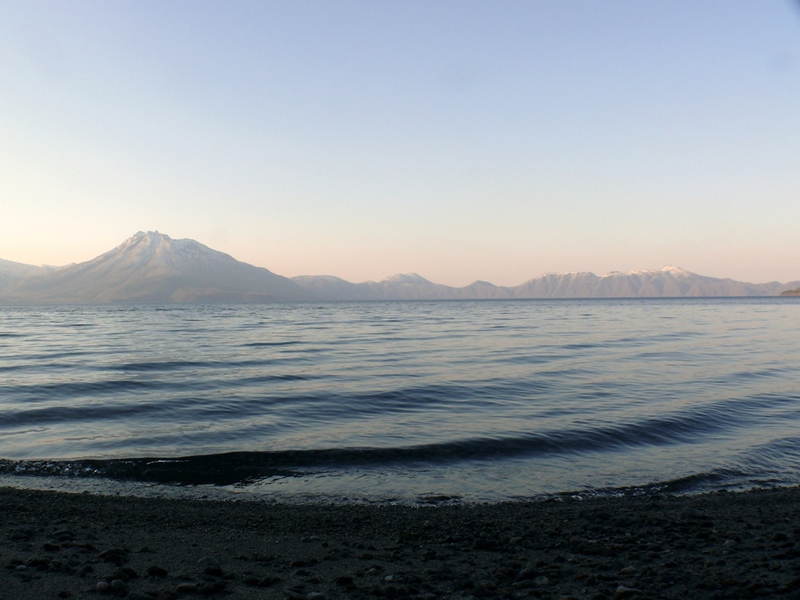 Die durch nonstop eingesparte Zeit nutzen wir zu einem Umweg zum ‚Lake Shitotsu’ und freuen uns über herrliche Ausblicke auf die schneebedeckten Berge ‚Eniwa’ und ‚Fuppushi’, und zum Schluss dann noch den herrlichen Sonnenuntergang. Rund um den See haben wir leider nicht geschafft, die Nationalstrasse ‚78’ hat noch Wintersperre (zu Recht). Über Nebenstrassen, vorbei am "Warmbad" ‚Shikotsu Onsen’ direkt am See, fahren wir weiter nach ‚Sapporo’. Gegen 19.00 Uhr erreichen wir unser Hotel.