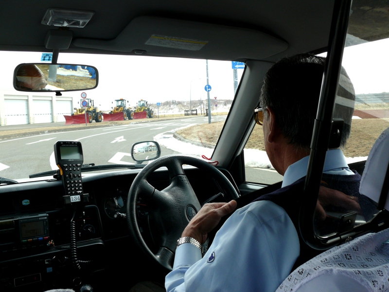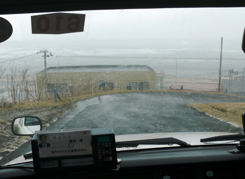 innerhalb weniger Minuten zieht von ‚Sachalin’ her eine kleine aber heftige Unwetterfront über uns hinweg mit Windstärke 8 – 9 und waagerechtem Schnee und Graupel – wir können uns gerade noch rechtzeitig ins Taxi retten. Wir nehmen das auch als Zeichen, unsere Tour nun fortzusetzen.