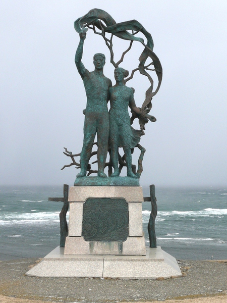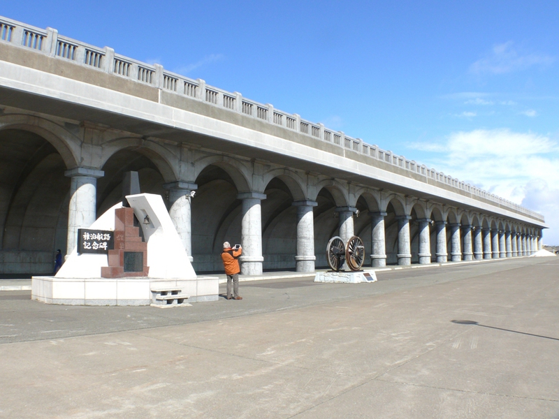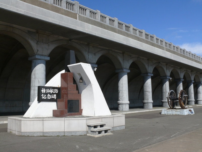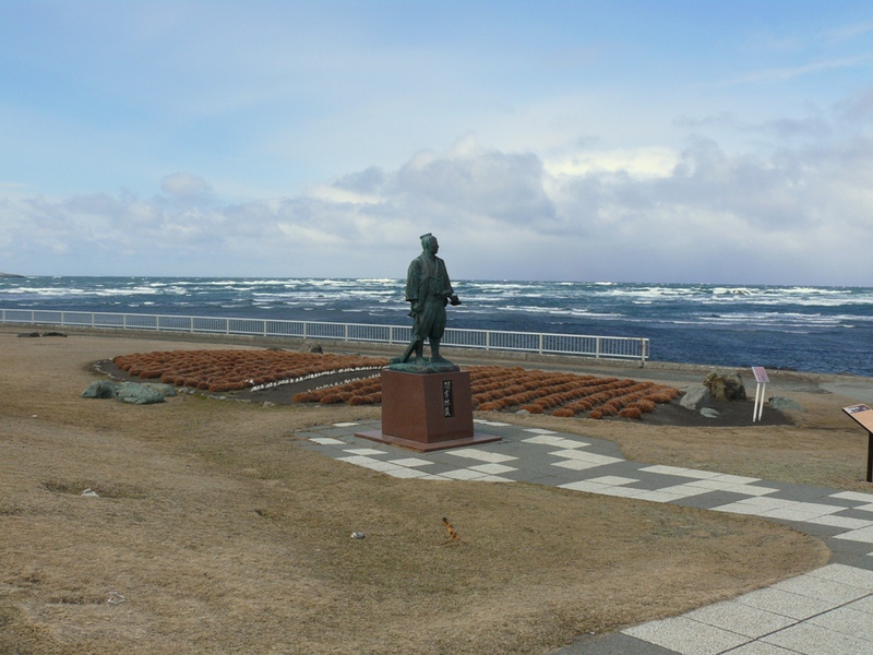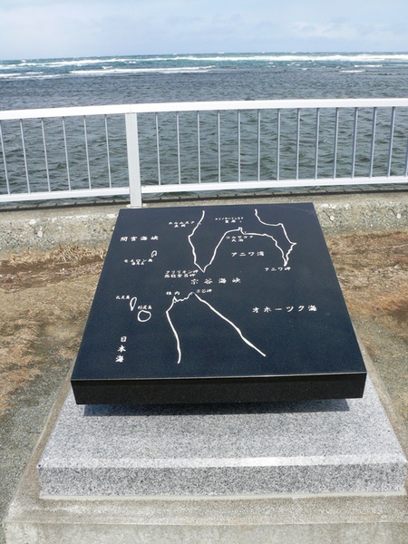 Ein Denkmal erinnert hier an den japanischen Seefahrer ‚Mamiya Rinzo’, bekannt durch seine Erforschung und Kartografierung ‚Sachalins’ Anfang des 19.Jh. . Dabei erkannte er den Inselcharakter und konnte nachweisen, dass ‚Sachalin’ aufgrund des ‚Tatarensunds’ keine Verbindung zum asiatischen Festland hat. Und eine in Stein gemeißelte Karte demonstriert die Nähe zu Russland....