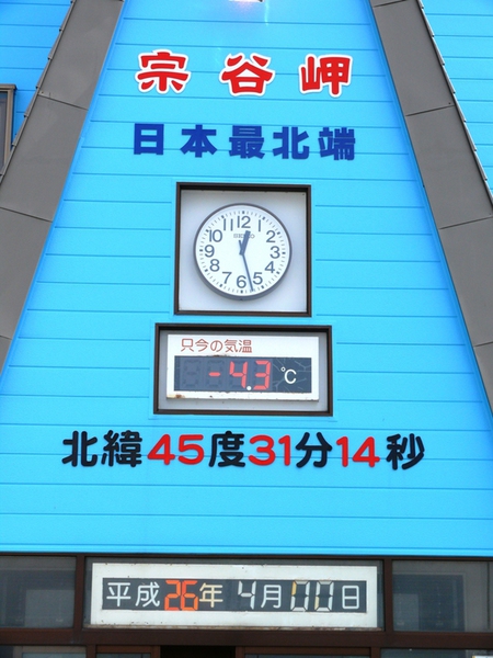 Aber unser eigentliches Ziel ist natürlich der ‚northernmost point of Japan’ – das Monument ist überhaupt nicht zu übersehen! Auch die Temperatur-Probe im ‚Japanischen Meer’ ist für uns obligatorisch: gefühlte 0°!