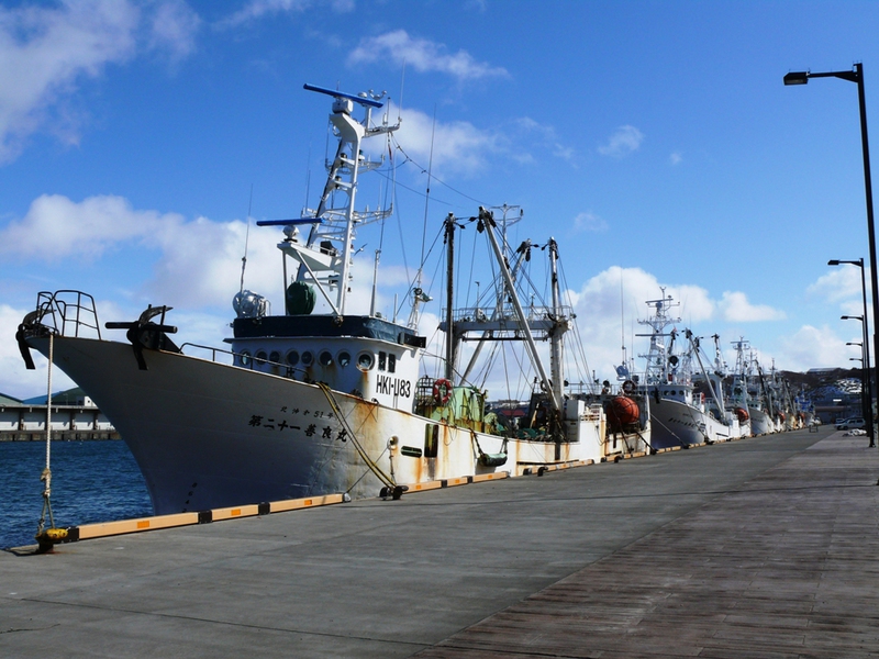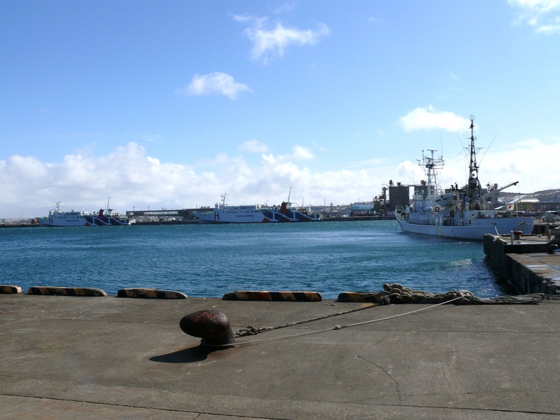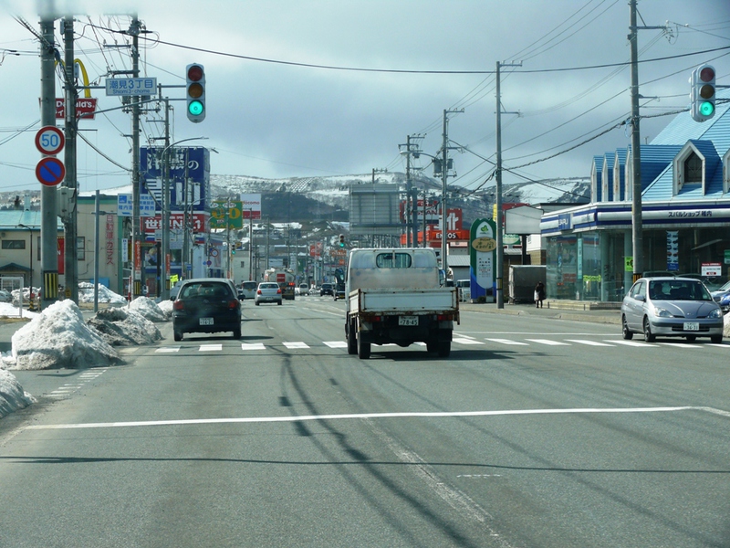 Entlang der sichelförmigen ‚Soya-Bucht’ - die Sonne kommt schon wieder hervor -, vorbei am Flughafen, geht es nun nach ‚Wakkanai’, der nördlichsten Stadt Japans am anderen Ende der Bucht. Sie ist doch größer und geschäftiger, als wir es uns nach unseren Erfahrungen in anderen ‚nördlichsten’ oder ‚südlichsten’ Städten auf der Welt vorgestellt haben. Einen ersten Eindruck konnten wir ja schon beim Landeanflug gewinnen.