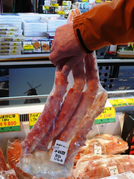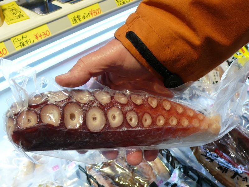 Eine der Attraktionen hier ist der ‚Fukuko Market’ mit vielen kleinen Ständen – für uns am interessantesten sind wieder die riesigen Seespinnen-Beine und an den Saugnäpfen kann man ermessen, dass der der Kalamar nicht gerade klein gewesen ist.... Im rechten Teil des Gebäudes, dem Markt direkt angeschlossen, haben sich eine ganze Reihe Restaurants etabliert – eines davon sehr rustikal ganz im alten Stil eingerichtet. Doch größter Hingucker ist der Original-Bug eines Schiffes....