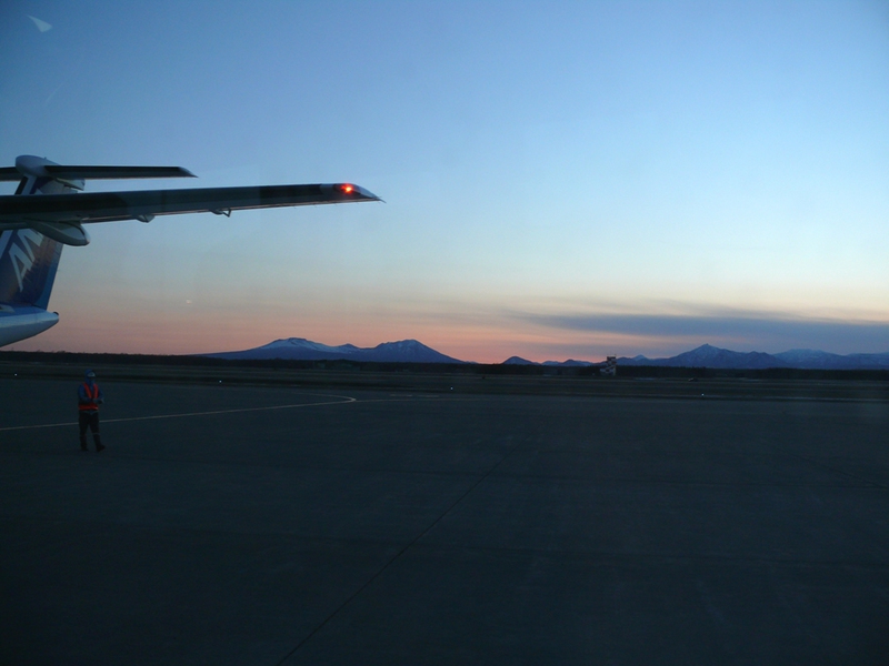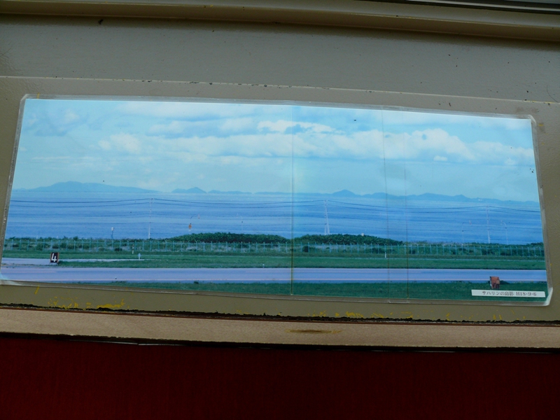 Vom ‚Observation-Deck’ des Flughafens kann man bei guter Sicht die russische Insel ‚Sacharin’ sehen (siehe Foto) – die Berge, die wir im Hintergrund schemenhaft erkennen können, sind leider eine ‚Fata Morgana’ – eine Spiegelung der Berge hinter uns.... Keine Täuschung ist die Maschine der ANA, die gerade gelandet ist und uns dann zurück nach ‚Sapporo - Chitose’ bringen wird.