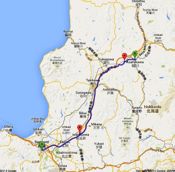 Wir haben eine 3tägige Hokkaido-Rundfahrt vor uns – erste Etappe: ‚Sapporo’ bis ‚Asahikawa’, ‚schlappe’ 135km. Mit dem Navi kommen wir mittlerweile gut zurecht.