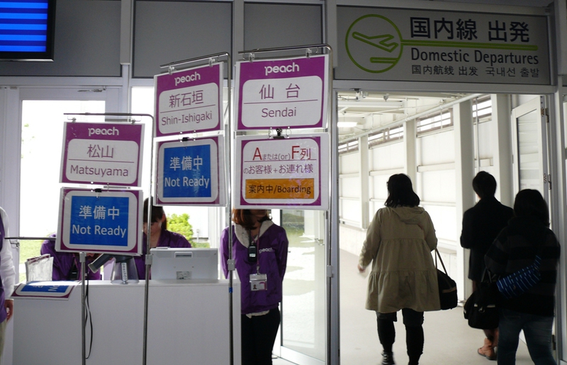 Der ‚Terminal 2’ ist praktisch nur ‚Peach Air’ – um diese Zeit ist schon ziemlich viel los! Einchecken – Sicherheitskontrolle – Gepäckaufgabe, dann geht es zum Gate....