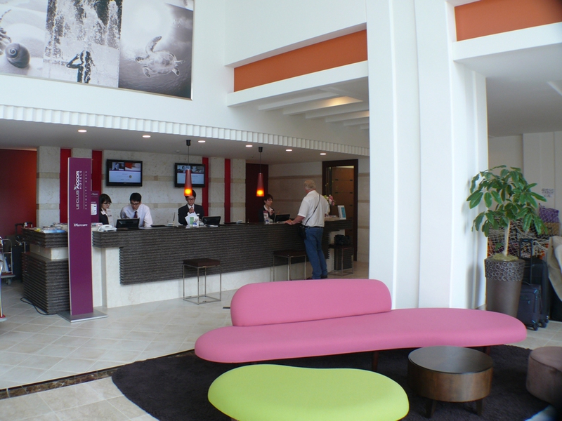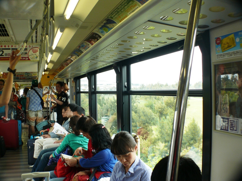 Unsere Zimmer sind mal wieder japanisch klein, aber immerhin mit 2 Betten, und mit dem Stauraum für die Koffer (in- und übereinander) geht es mal so gerade...