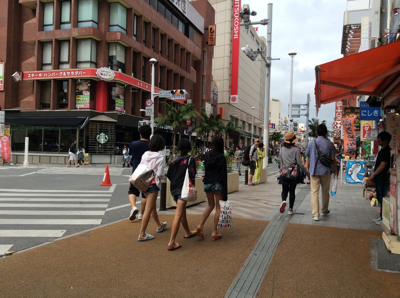 Nachmittags ein erster Erkundungsgang durch die Stadt: es ist Sonntag, und die Haupt-Einkaufsstrasse ‚Kokousai’ ist für den Autoverkehr gesperrt und zur Fußgängerzone umfunktioniert. Das entspannte feeling, "auf einer kleinen Insel" in den Tropen zu sein, ist dem Großstadt-Stress gewichen.