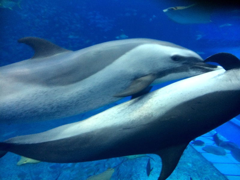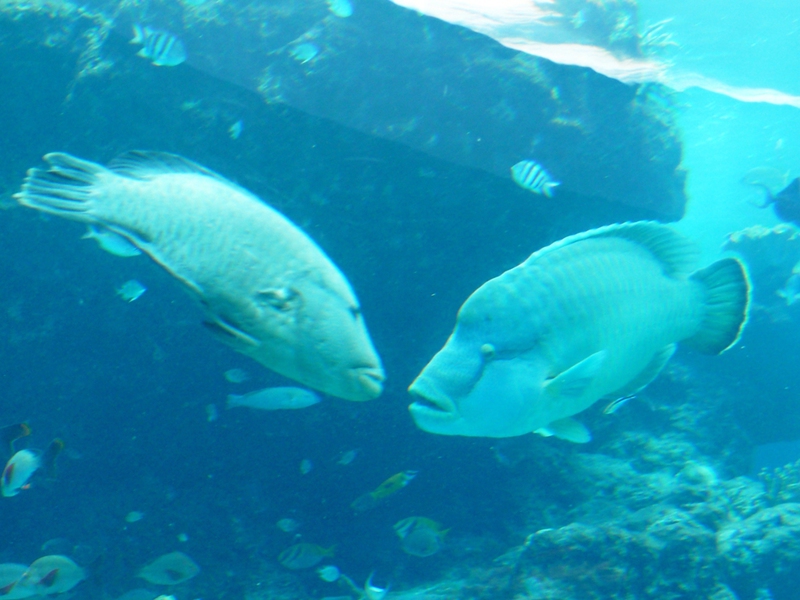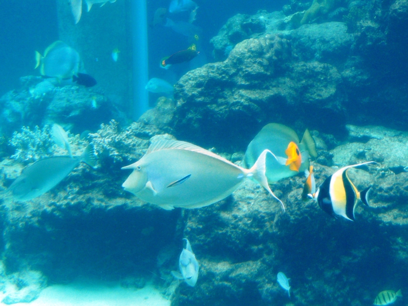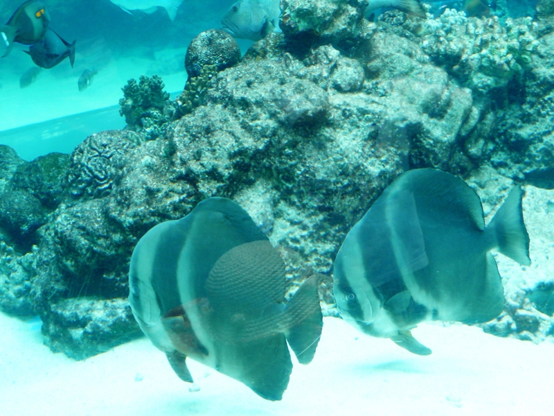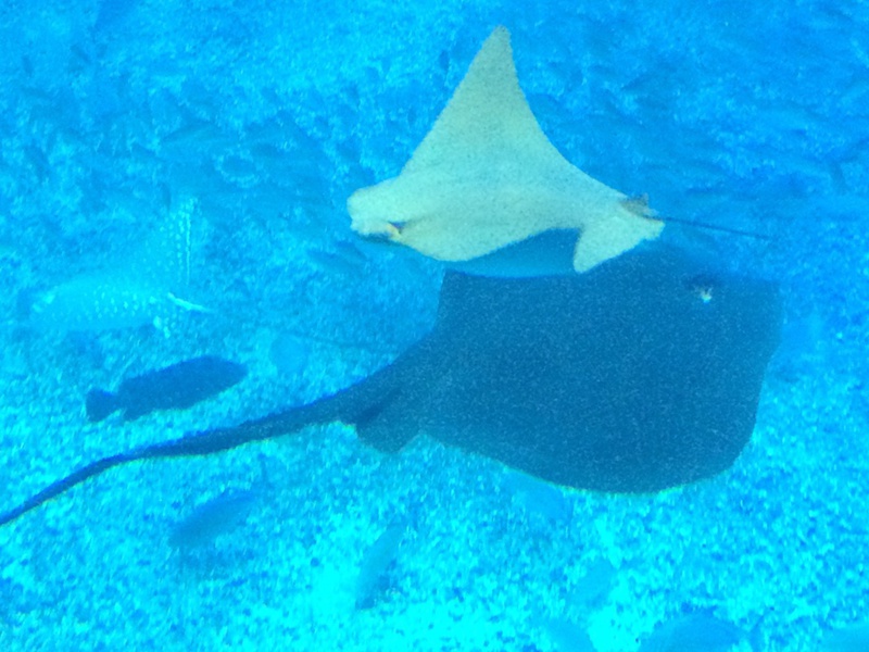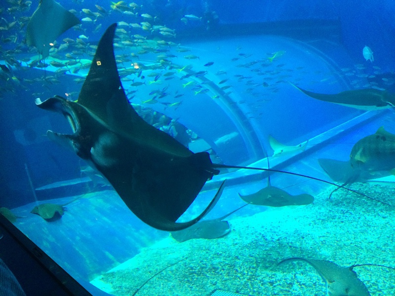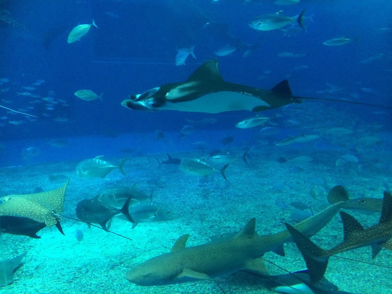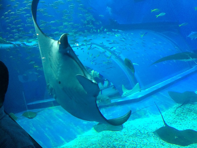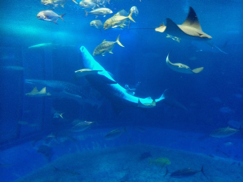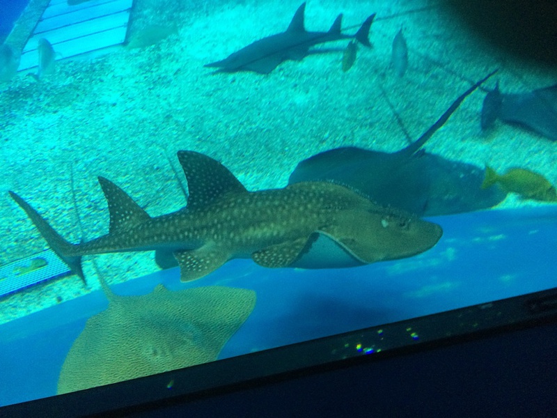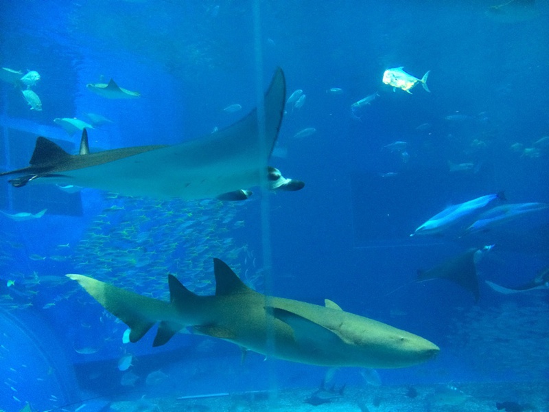 Die größte Attraktion sind die drei Walhaie in einem riesigen Bassin.