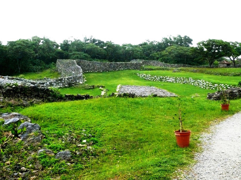 Nach diesem ‚Highlight’ lassen wir uns vom Dauerregen nicht abhalten und komplettieren unsere Inselrundfahrt. Nicht weit entfernt sind die Grundmauern und die Befestigungsmauer eines Ryukyus-Schlosses aus dem 13. Jh zu sehen.