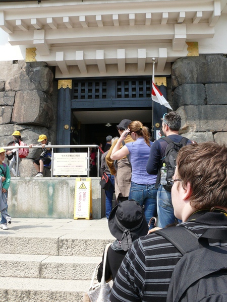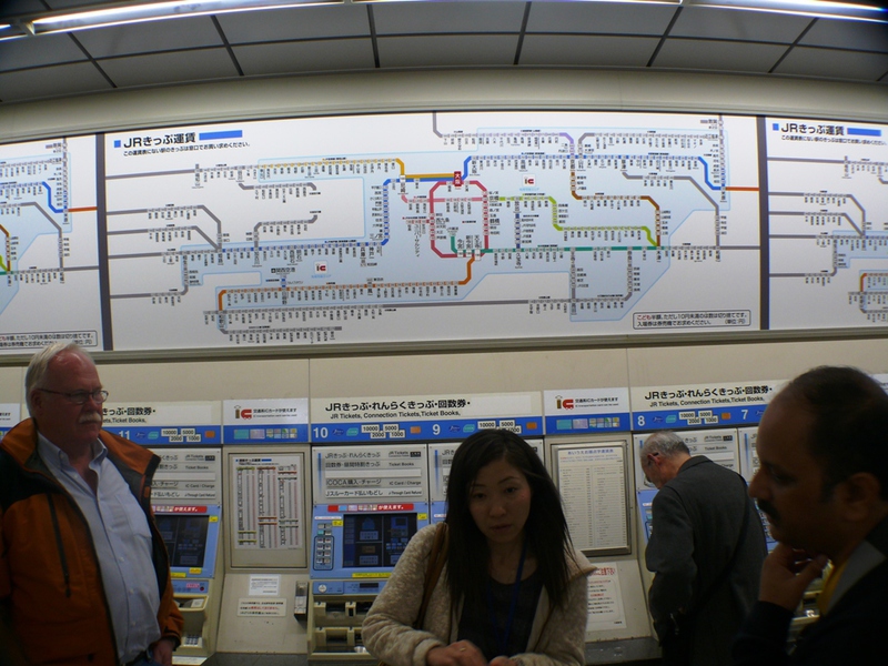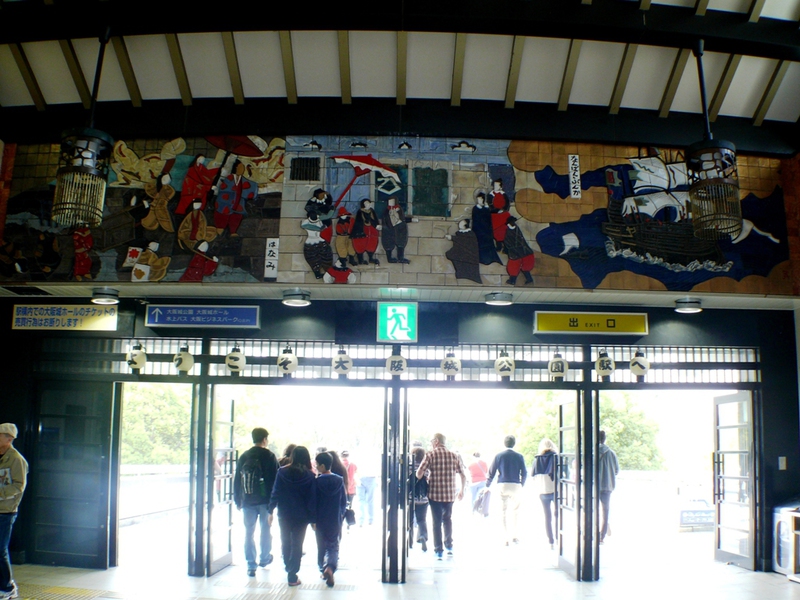 'Yukuma' löst unsere Tickets für die 'Osaka Loop Line’ – wir fahren nun knapp 20 Minuten mit der Suway bis 'Tennoji'. Nach 15 Minuten Fußmarsch erreichen wir die Brücke, die in den ‚Osaka Burgpark’ führt.