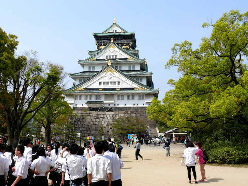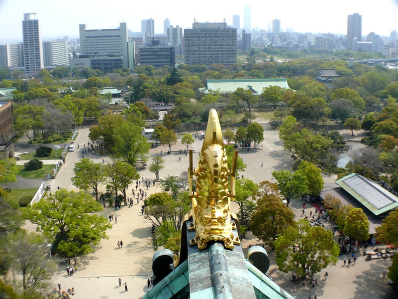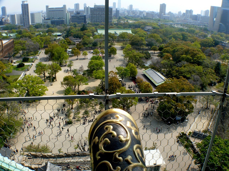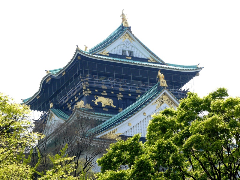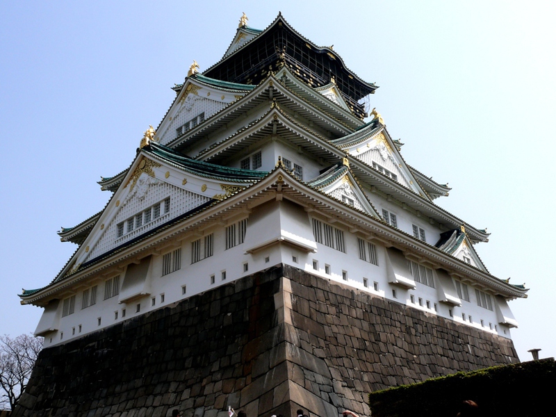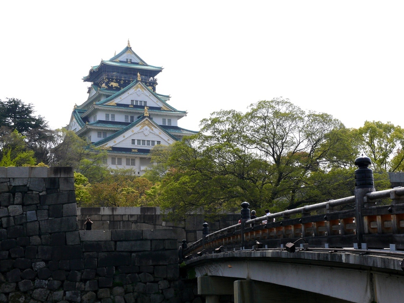 Die Burg ‚Osaka-jo’ wurde erstmals erbaut im 16.Jh . und traditionsgemäß aus Holz errichtet. Nach mehrmaligen Zerstörungen durch Feuer oder Kriege wurde sie dann zuletzt 1997 in Beton fertig gestellt.