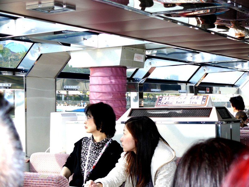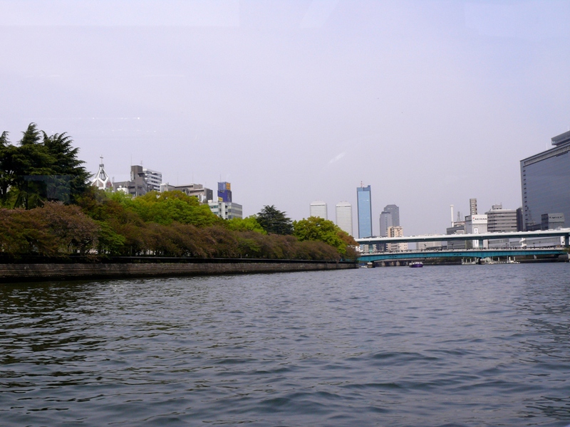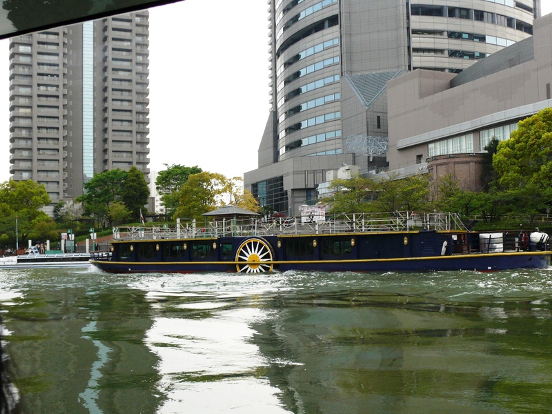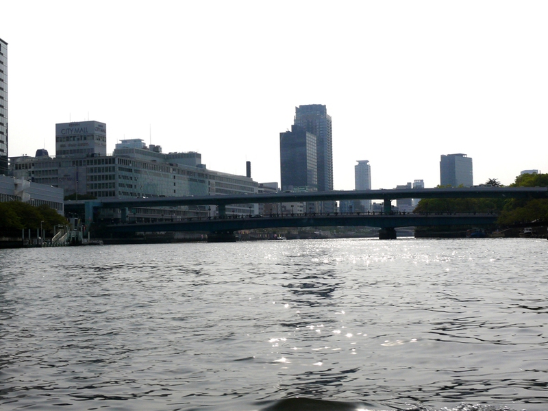 Schnell ist unsere Zeit um, denn um 15:00h geht unsere Bootstour los – nicht ganz so optimal, weil die "highlights" am Ufer doch recht rar sind.... eine moderne Skulptur – ein Schiffsbug mit Segel - , dann die ‚Central Public Hall’, ein schönes altes Gebäude aus dem beginnenden 20. Jh., das kulturell genutzt wird und neben der ‚Osaka-Burg’ ein Wahrzeichen der Stadt ist.